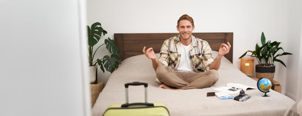 Reduziere Koffein sechs Stunden vor Abflug, wähle einen Platz weg von starkem Licht und Lärm, nimm Ohrstöpsel und Schlafmaske mit. Ein kurzes Dehnen vor dem Boarding entspannt Nacken und Gedanken gleichermaßen.